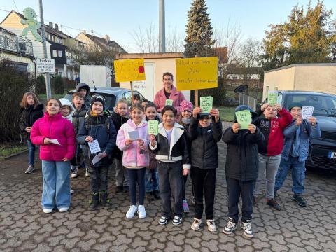 "Sicher zur Schule": Klasse 3.1 setzt sich gegen Autoverkehr vor der Schule ein