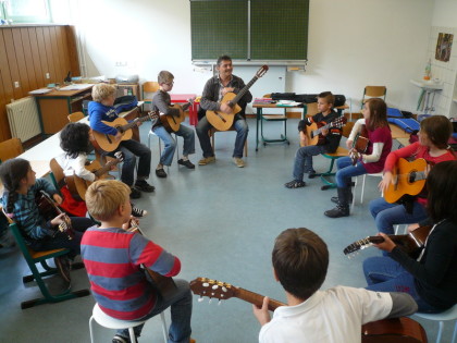 erprobtes Mietsystem an: Ab 12 Euro im Monat kann man Kindergitarren mieten und diese am Ende des Schuljahres übernehmen. Dadurch bekommen die Schüler ihr eigenes Instrument. Wer kein Interesse mehr